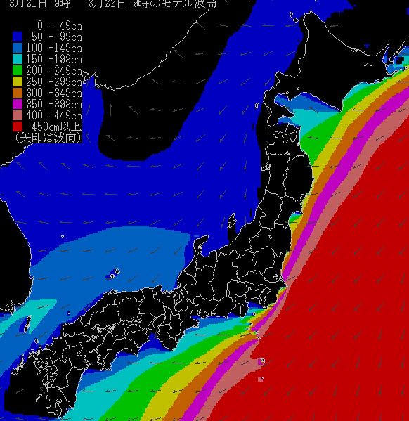 太平洋側が真っ赤。うねりの高い事を表しています。