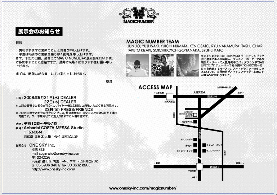 またJUNJO、ICHIGO,脇祐二、沼田裕一、大里健、木崎タケトと言ったMagicNumberのアスリート達専用のステッカーも作ってきました。